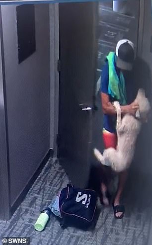 In the video which was taken on August 22, Jeffrey can be seen pulling the puppy off the floor by its scruff and violently dragging the animal through a door before smacking it.