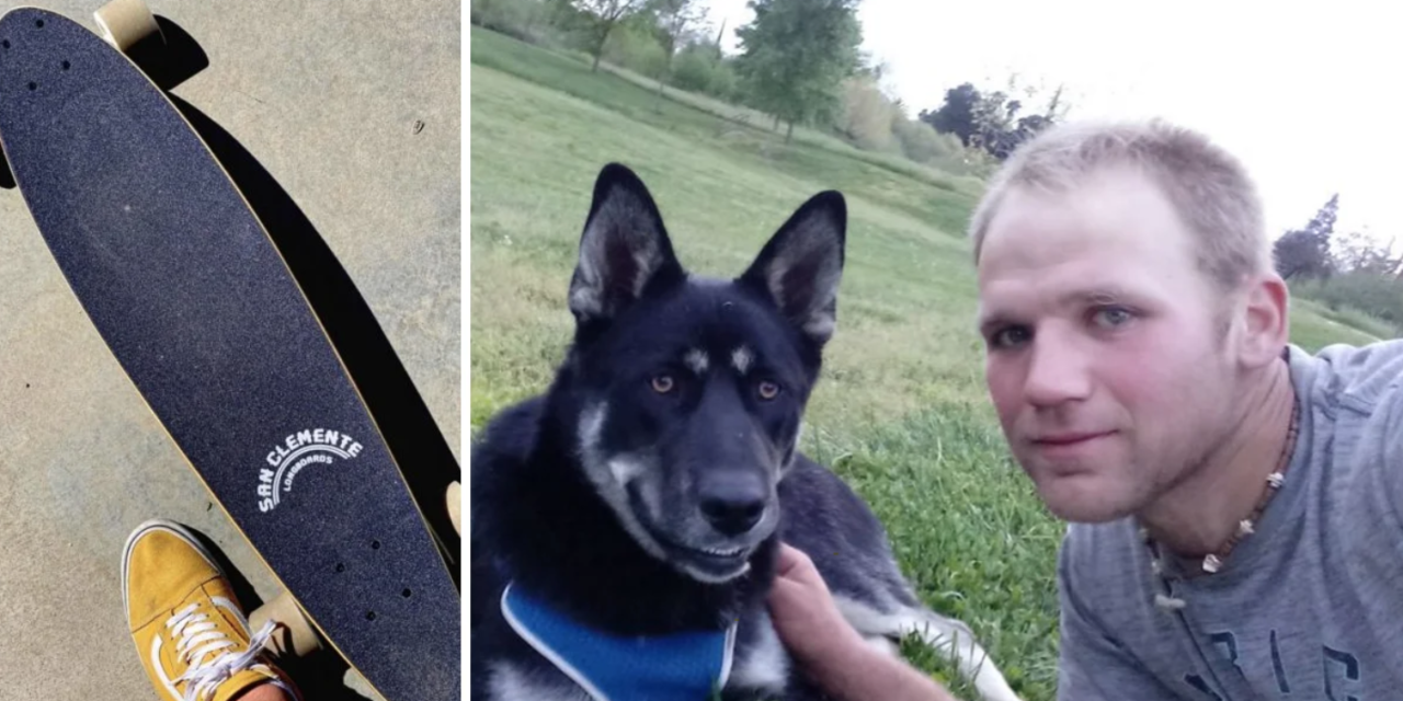 When they arrived on the scene, they saw that Sol Brua was hitting his Siberian husky with his skateboard.