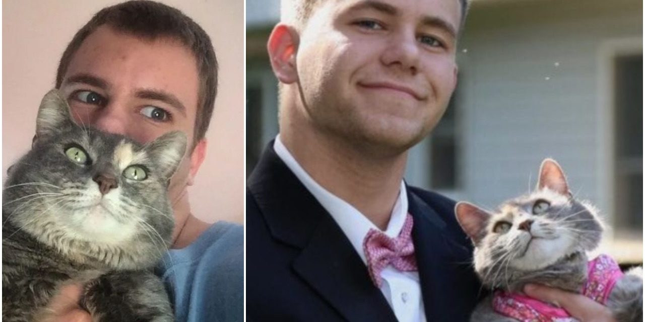 Instead of asking his sister or his cousin to be his date, he decided to take his rescue cat Ruby. His story took the Internet by storm.